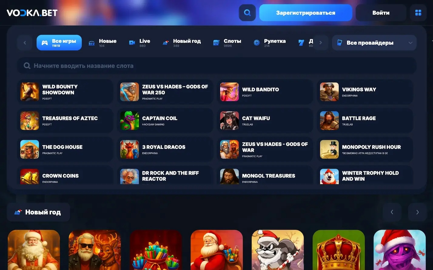 Дизайн официального сайта выдержан в тёмно-синей цветовой гамме с акцентами красного и белого. Навигация интуитивная — все основные разделы размещены в верхнем меню. Игроки могут быстро перейти к слотам, настольным играм, live-казино или разделу с акциями. Каталог развлечений на платформе vodka casino насчитывает свыше 3000 позиций от таких провайдеров, как Pragmatic Play, NetEnt, Play'n GO, Evolution Gaming и Microgaming.